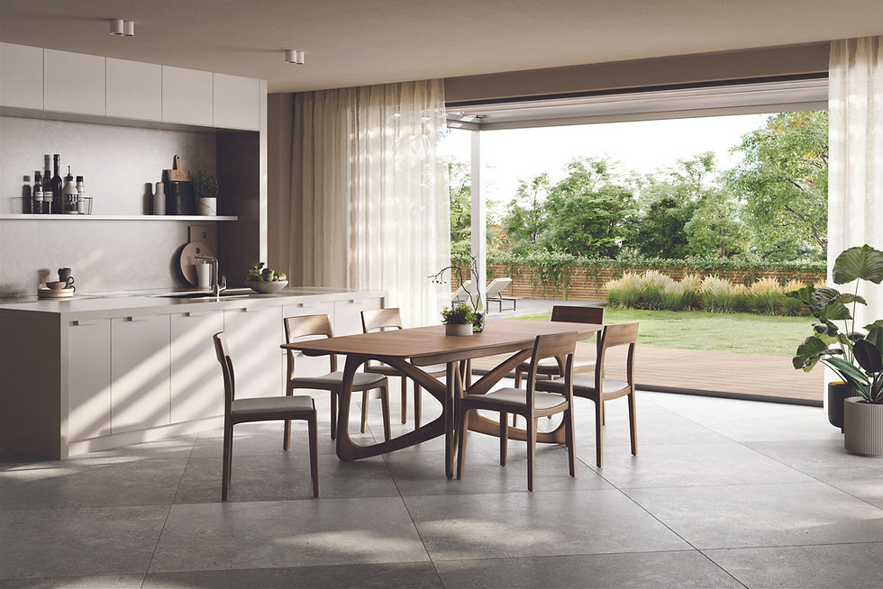A NEW TABLE PROTOTYPE DESIGNED FOR CONVERSATION AND ENTERTAINMENT. THIS TABLE IS PLACED BETWEEN COCKTAIL AND DINING HEIGHT AND IS INTENDED TO BE USED WITH LOUNGE CHAIRS FOR A RELAXING FEEL.